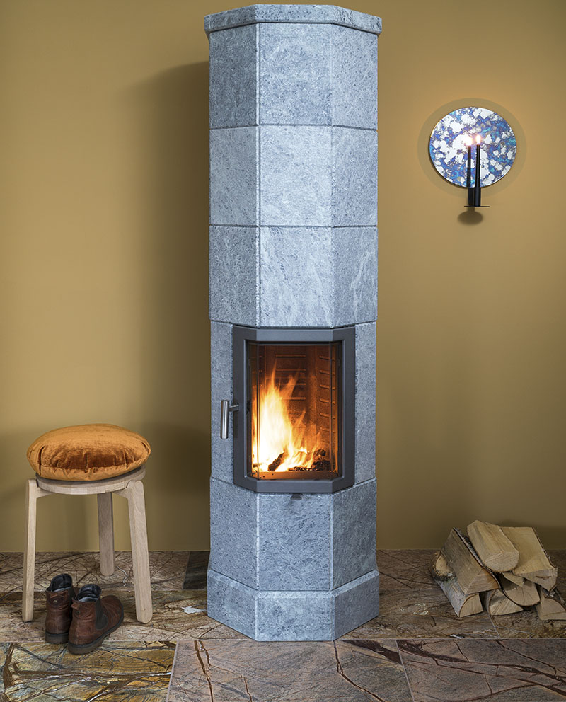• Door de verbranding van hout of pellets wordt het speksteen verwarmd en straalt de kachel uren warmte uit